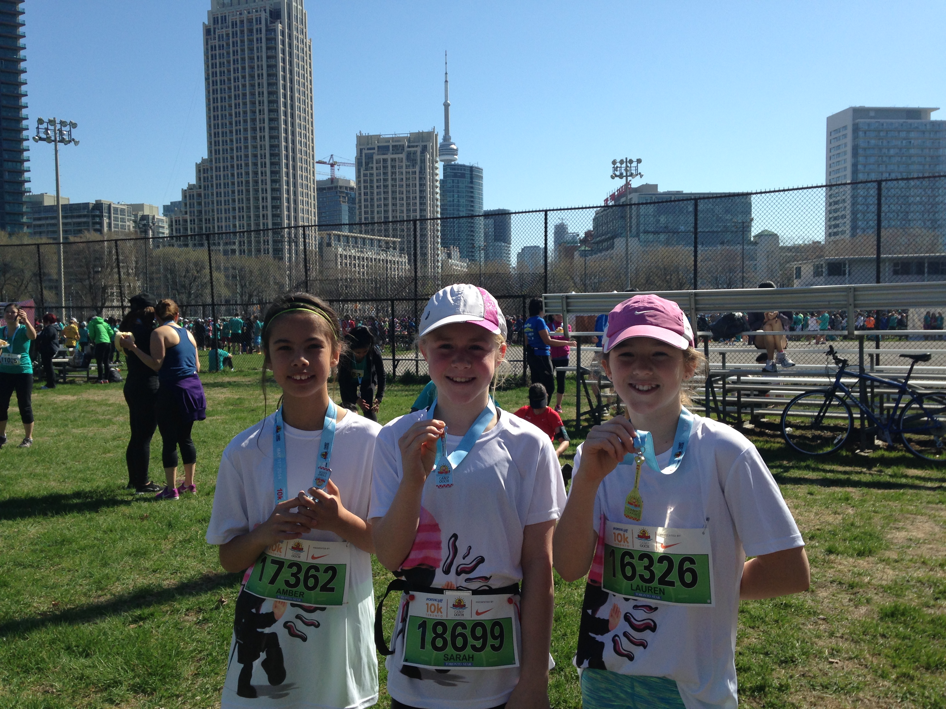 Congrats to SportingLife 10km Runners: Thanks to everyone who made donations to Camp Oochigeas. As a group we raised approx 1875.00! With our kidathletes Lauren and Amber being the top fundraisers raising 345.00 and Amber 940.00 respectively. Well done girls!! We helped Lauren’s Tumour Ninjas raise 24,885.00! This made her team one of the top two fundraisers!! Sure is nice to be a part of this effort! The morning was full of logistics, but worth the effort. Seems like everyone had a great race! For the record – Brogan beat me by .01 of a second…on Mother’s Day!